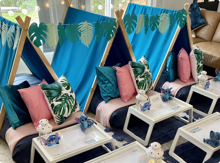 Slumber Wonderland will transform your room into a whimsical wonderland, making your child’s slumber party an unforgettable experience for them and their guests. We decorate your room with specialised teepee tents, lighting and accessories to create a unique slumber party experience. Parties may only last a night, but memories last forever. Our parties are perfect for sleepovers and birthdays! Multiple themes are available for boys, girls and adults!